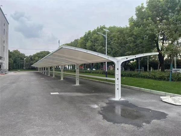 为现代小区量身打造的7字造型膜结构车棚,以极简线条勾勒出流畅的“7”字形态,单侧立柱设计释放了更多地面空间,车辆进出、停放毫无局促感。顶部采用高强度建筑膜材,具备优异的抗拉、抗撕裂性能,能从容应对暴雨、强风等恶劣天气;表面经特殊涂层处理,防晒隔热、防紫外线,夏季棚下温度显著低于室外,保护车辆免受暴晒老化。